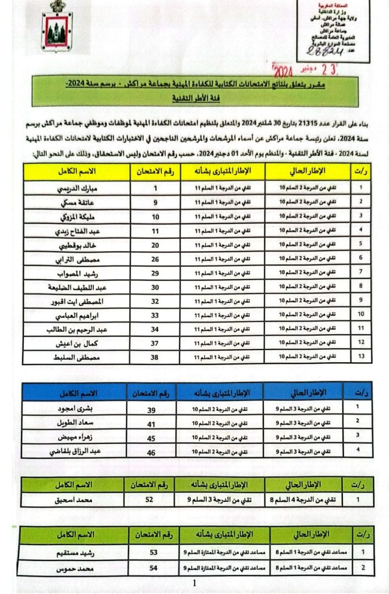 Résultats des examens écrits d'aptitude professionnelle 2024 - Cadres administratifs