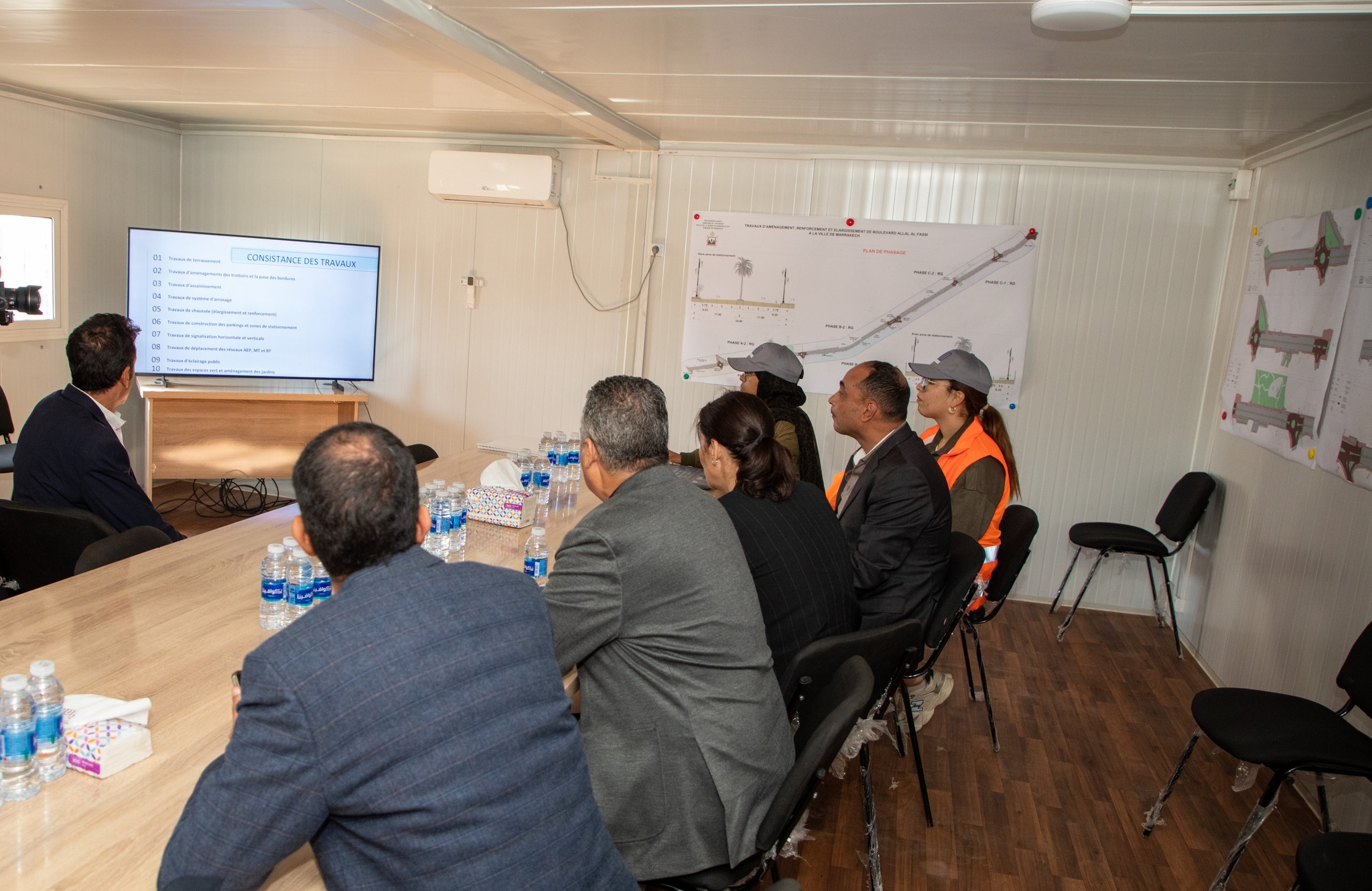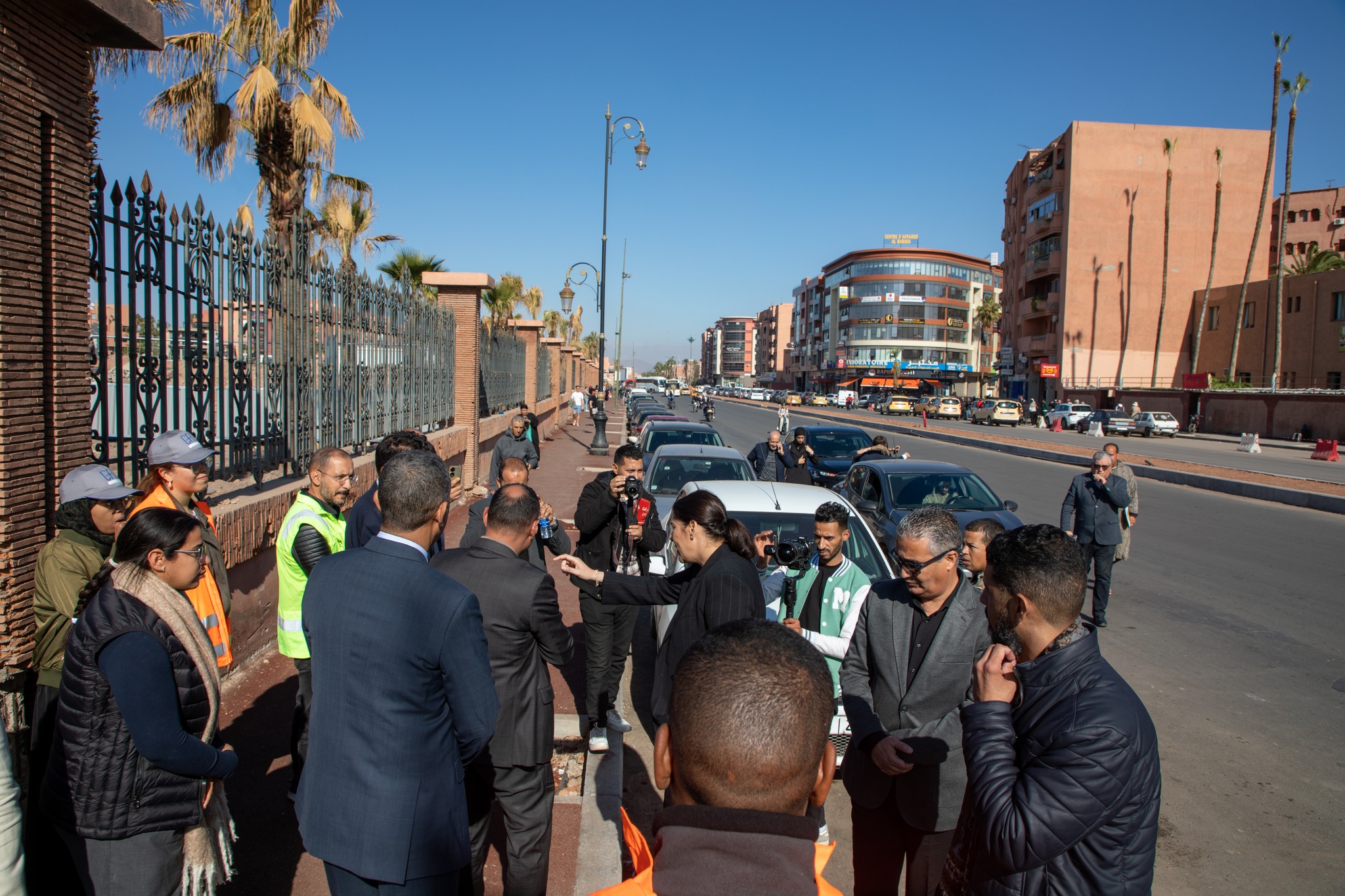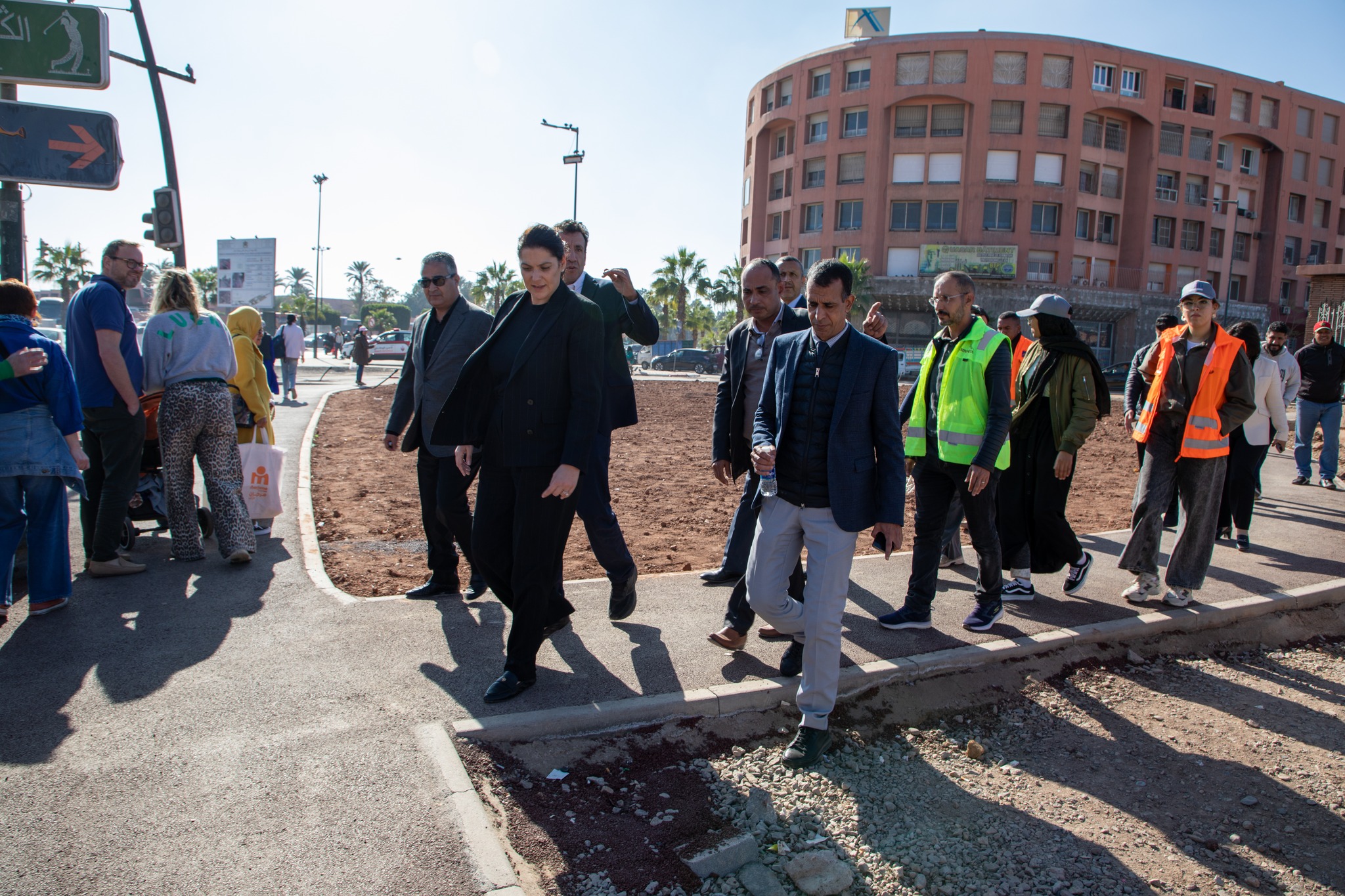 Mme Fatim Ezzahra EL MANSOURI, Présidente de la Commune de Marrakech, accompagnée du premier vice président délégué au secteur des travaux, M. Mohamed IDRISSI, ainsi que des cadres de la commune, a inspecté les travaux de réaménagement de l’avenue Allal El Fassi.